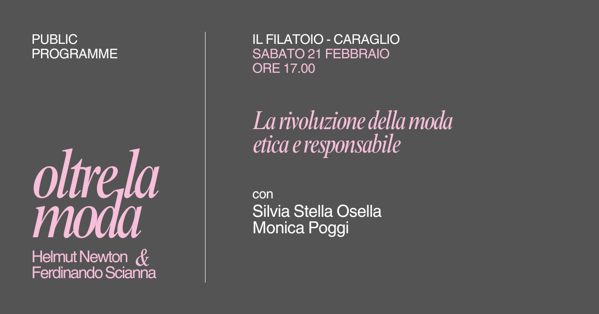 Uscendo dal focus sulle tematiche fotografiche, l’incontro si concentrerà sull’impatto della moda nell’accelerazione del cambiamento climatico e sulle responsabilità dell’industria tessile. Attraverso l’esperienza di Silvia Stella Osella, la discussione metterà al centro pratiche, materiali e filiere alternative, proponendo una visione della moda come sistema etico e consapevole. Nel contesto altamente simbolico del Filatoio di Caraglio, il confronto dialoga idealmente con l’immaginario della moda raccontato nelle mostre di Helmut Newton e Ferdinando Scianna, spostando lo sguardo dall’estetica dell’immagine alle conseguenze reali dei processi produttivi.